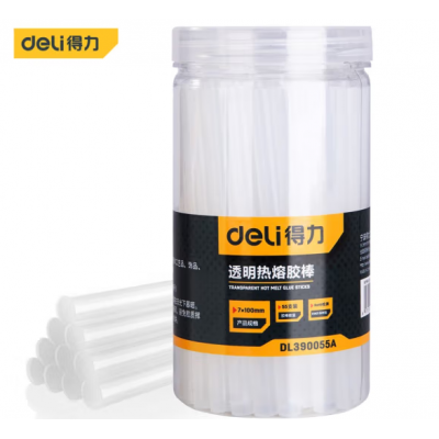 得力(deli)热熔胶棒家用高粘性塑料热熔枪胶枪手工棒棒胶多场合适用透明胶条 55支桶装7*100mm DL390055A