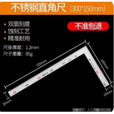 首页 > 建筑建材 > 五金附件 > 不锈钢拐尺/L尺 木工直角尺拐角尺L型尺90度曲尺 双面都有刻度直角尺子 (150x300mm双面都有刻度)