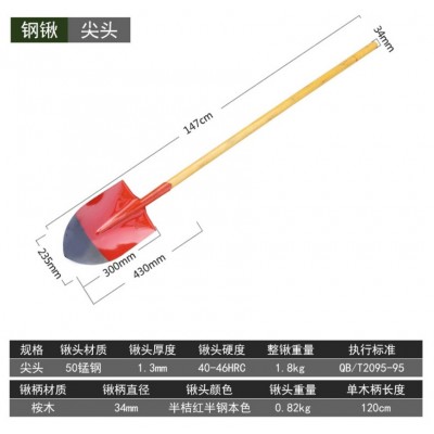 铁锨农用挖土种花钢锹户外铲子 加厚大铁锹(带柄桔红尖型锹)