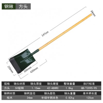 首页 > 建筑建材 > 手动工具 > 铁锨农用挖土种花钢锹户外铲子 加厚大铁锹(带柄-绿色-方头)