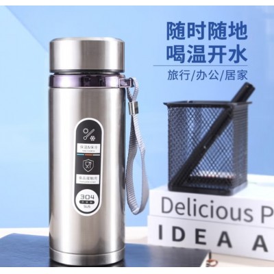 康林 304不锈钢保温杯大容量男女士户外高档商务保温杯经典提绳泡茶水杯子 本色750ml