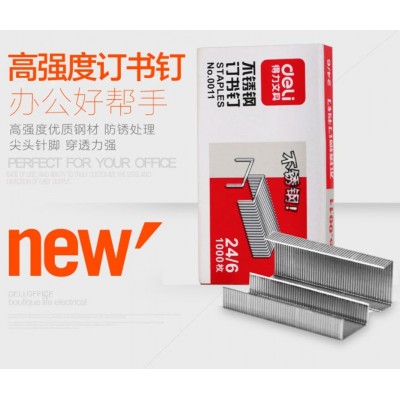 首页 > 办公用品 > 文具 > 得力(deli)订书钉0011通用型不锈钢订书钉/订书针 办公用品约20页订书钉1000枚/盒
