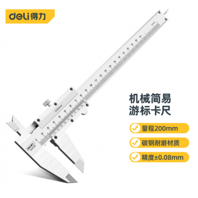 首页 > 建筑建材 > 手动工具 > 得力DL92200 机械式简易卡尺游标读数 内径外径卡尺200mm
