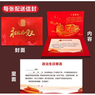 中国风党员政治生日贺卡支部名称礼物感恩剪纸红船祝福卡片半90度