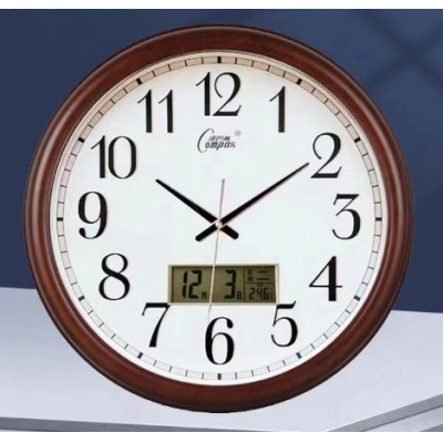 首页 > 仪器仪表 > > 康巴丝带日历钟表挂钟客厅时尚创意时钟现代简约石英钟装饰壁钟木色日历