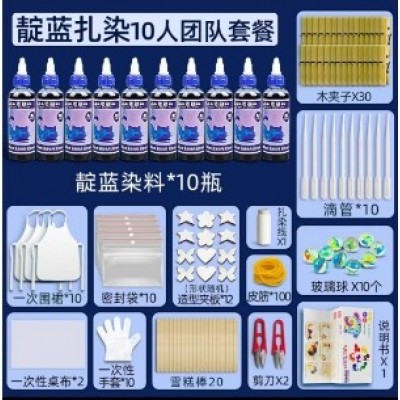 乐萌扎染颜料12色冷水染料套装10人套餐【10瓶靛蓝颜料+扎染工具】