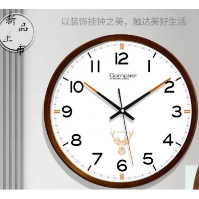 康巴丝黑白灰现代时尚简约圆形客厅挂钟静音卧室时钟混色