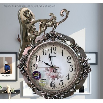 丽盛欧式双面挂钟两面表家用时尚创意客厅时钟静音石英钟表大号8218