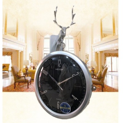 首页 > 仪器仪表 > > 北欧双面挂钟简约静音时钟鹿头时尚客厅家用钟表创意装饰挂表