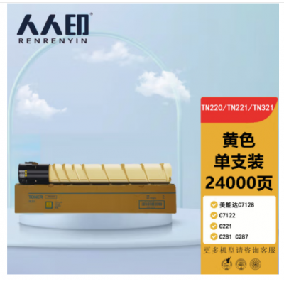 人人印TN220粉盒黄色 适用柯尼卡美能达C7128 C7122 C221 C281 C287墨盒 震旦ADT223 ADC223 S 283 碳粉