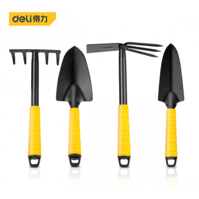得力(deli) 园艺工具三件套 盆栽种植松土除草园艺工具套装 宽铲子五齿耙两用锄头 赶海工具 【铲锄耙四件套】DL580804