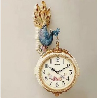 首页 > 仪器仪表 > > 海之星孔雀欧式双面挂钟客厅静音两面创意石英钟挂表墙表时钟8822混色