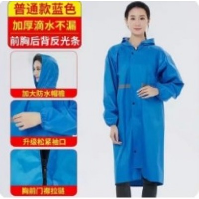 首页 > 建筑建材 > 其他防护用品 > 工厂男士连体雨衣 户外成人雨衣反光条加厚长款雨衣 拉链湖蓝色尺码可选