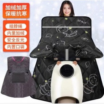 2021冬季加绒加厚电动摩托车挡风被牛津布防风防寒电瓶车挡风罩绒里护肩【兜+反光条】