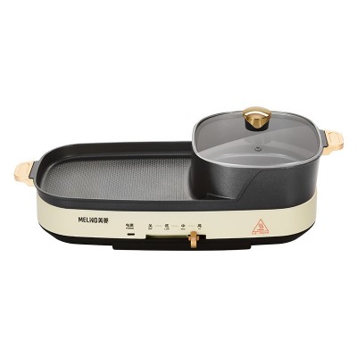 美菱(MeiLing)MT-LC1808 机械式涮烤一体锅 麦饭石涂层商用多用途锅 方便 米黄色陶瓷油涂层涮烤一体锅