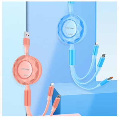 沃品(WOPOW) LC012超级快充双向伸缩一拖三数据线可调节拉伸快充线三合一 混色 1.2米