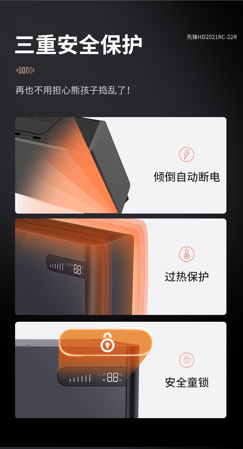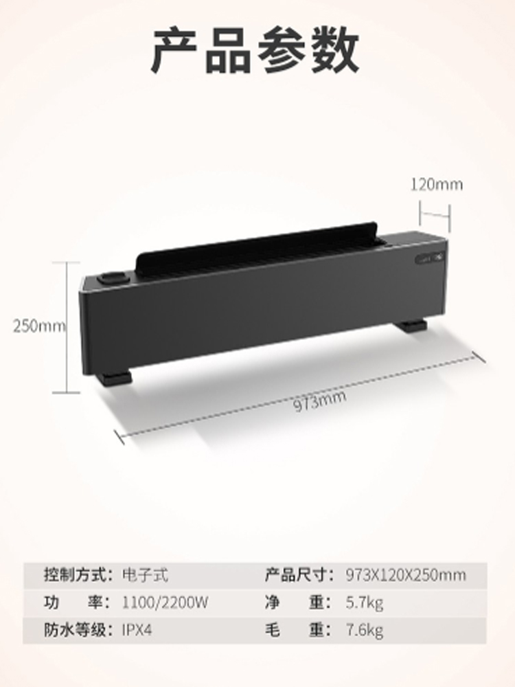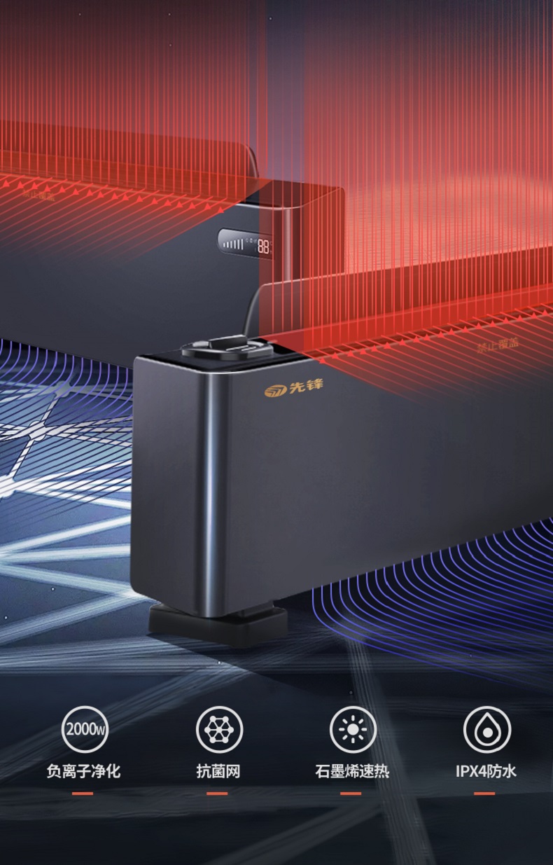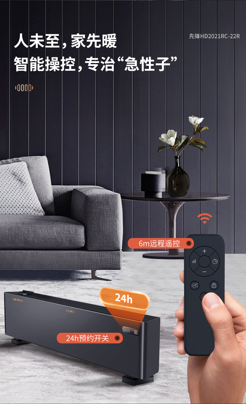 先锋 HD2021RC-22R 石墨烯踢脚线式取暖器 2200W取暖器