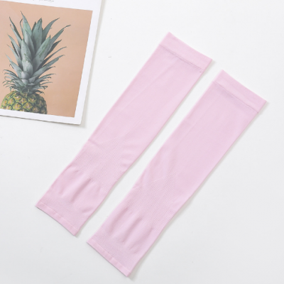 运动冰袖冰丝袖套防晒袖套户外骑行夏季防晒纯色护袖手套冰袖露指袋装粉色