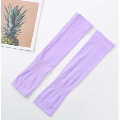 运动冰袖冰丝袖套防晒袖套户外骑行夏季防晒纯色护袖手套冰袖露指袋装浅紫