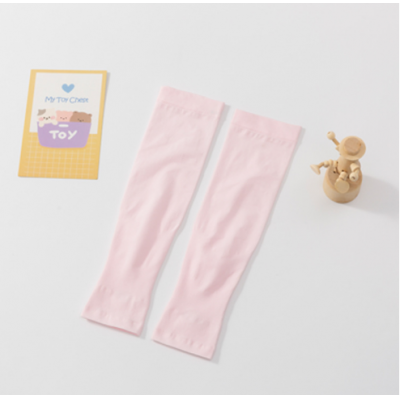 运动冰袖冰丝袖套防晒袖套户外骑行夏季防晒纯色护袖手套冰袖露指袋装儿童粉色