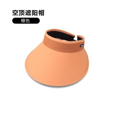 uv防晒帽渔夫帽女百搭春夏防紫外线遮阳帽太阳帽大帽檐空顶帽子橘色硬沿