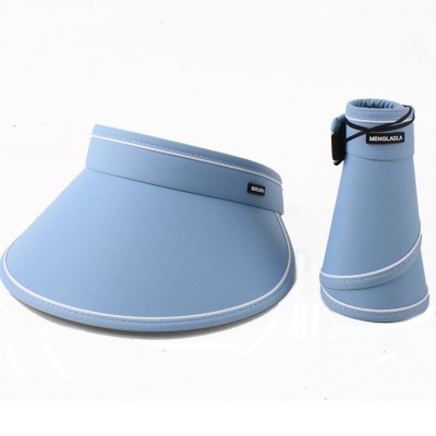 uv防晒帽渔夫帽女百搭春夏防紫外线遮阳帽太阳帽大帽檐空顶帽子可折叠蓝色