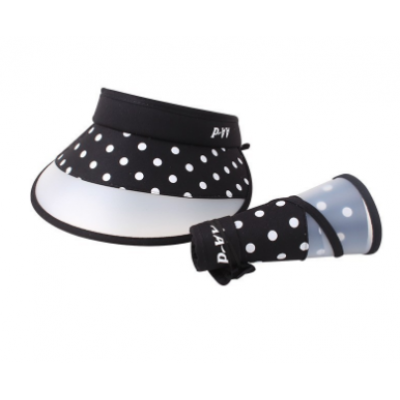 uv防晒帽渔夫帽女百搭春夏防紫外线遮阳帽太阳帽大帽檐空顶帽子波点黑色