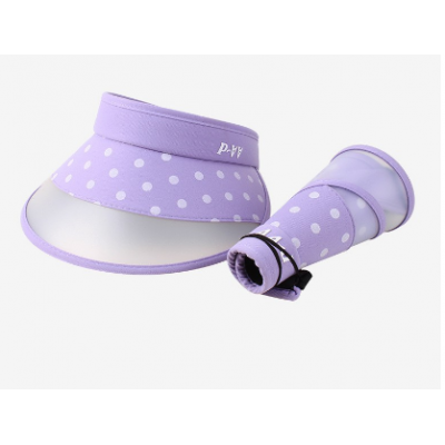 uv防晒帽渔夫帽女百搭春夏防紫外线遮阳帽太阳帽大帽檐空顶帽子波点紫色