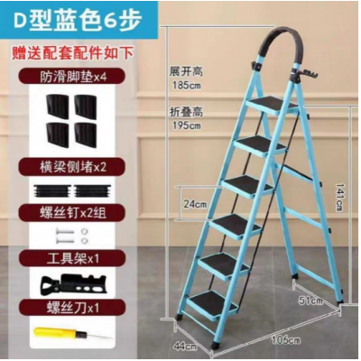 首页 > 建筑建材 > 五金附件 > 折叠梯子(6步—蓝色)家用折叠人字梯楼梯伸缩工程梯折叠升降梯
