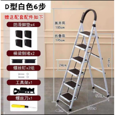 折叠梯子(6步—白色)家用折叠人字梯楼梯伸缩工程梯折叠升降梯