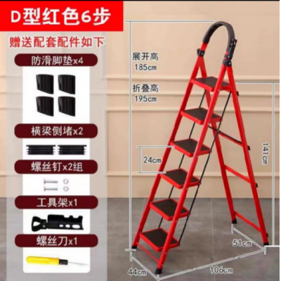 首页 > 建筑建材 > 五金附件 > 折叠梯子(6步—红色)家用折叠人字梯楼梯伸缩工程梯折叠升降梯