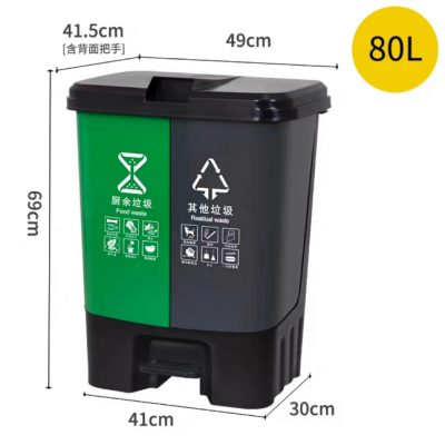 首页 > 用具 > 其他厨房用具 > 双桶分类垃圾桶(80L绿灰(厨余+其他垃圾)脚踏式带盖垃圾桶