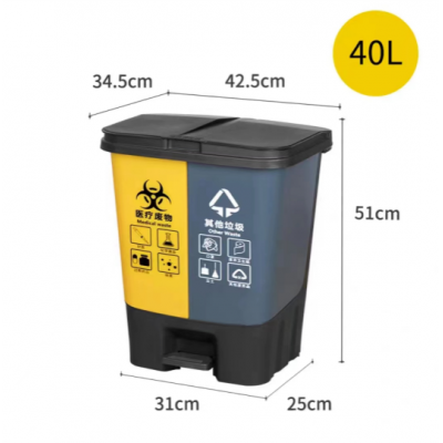 首页 > 用具 > 其他厨房用具 > 双桶分类垃圾桶(40L黄灰(医疗废物+其他)脚踏式带盖垃圾桶