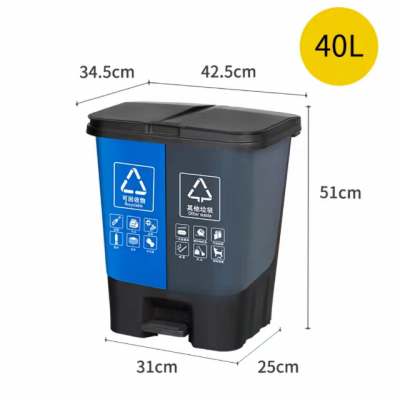 首页 > 用具 > 其他厨房用具 > 双桶分类垃圾桶(40L蓝灰(可回收+其他)脚踏式带盖垃圾桶