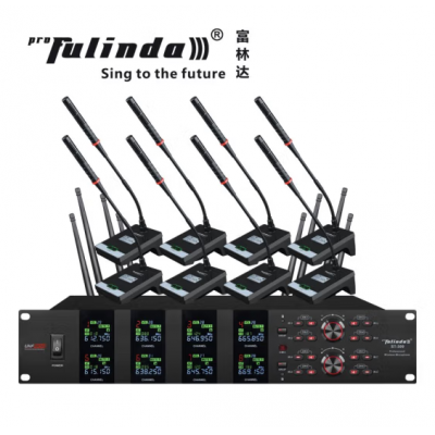 首页 > 广播、电视、电影设备 > 组合音像设备 > 会议、广播及音乐欣赏系统 > 富林达(proFulinda) ST-309 一拖八 U段调频专业无线麦克风 桌面鹅颈话筒舞台演出 803会议(长杆)