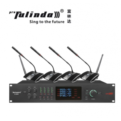 首页 > 广播、电视、电影设备 > 组合音像设备 > 会议、广播及音乐欣赏系统 > 富林达(proFulinda) D-903一拖四真分集无线话筒远距离300米舞台婚庆无线话筒 四会议系列