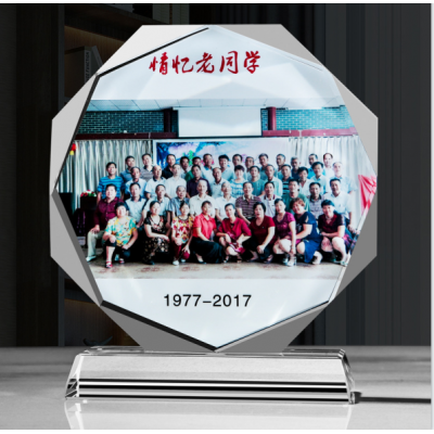 奖杯学生毕业纪念品赠礼水晶奖杯树脂彩印玻璃礼品工艺品同学聚会留念合照摆件奖杯经典八角款14*13cm(下单前询价)