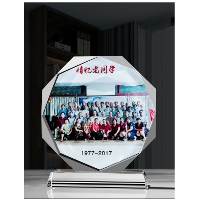 奖杯学生毕业纪念品赠礼水晶奖杯树脂彩印玻璃礼品工艺品同学聚会留念合照摆件奖杯经典八角款18*16cm(下单前询价)