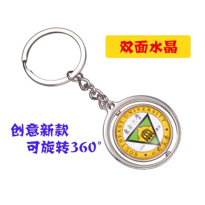 定制校徽logo双面旋转亚克力水晶照片刻字大学生礼品纪念品钥匙扣挂件纪念品双面钥匙扣定制水晶定制(下单前询价)