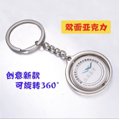 定制校徽logo双面旋转亚克力水晶照片刻字大学生礼品纪念品钥匙扣挂件纪念品双面钥匙扣定制亚克力定制(下单前询价)