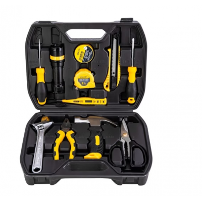 得力DL1012 家用多功能五金工具箱手动工具12件套