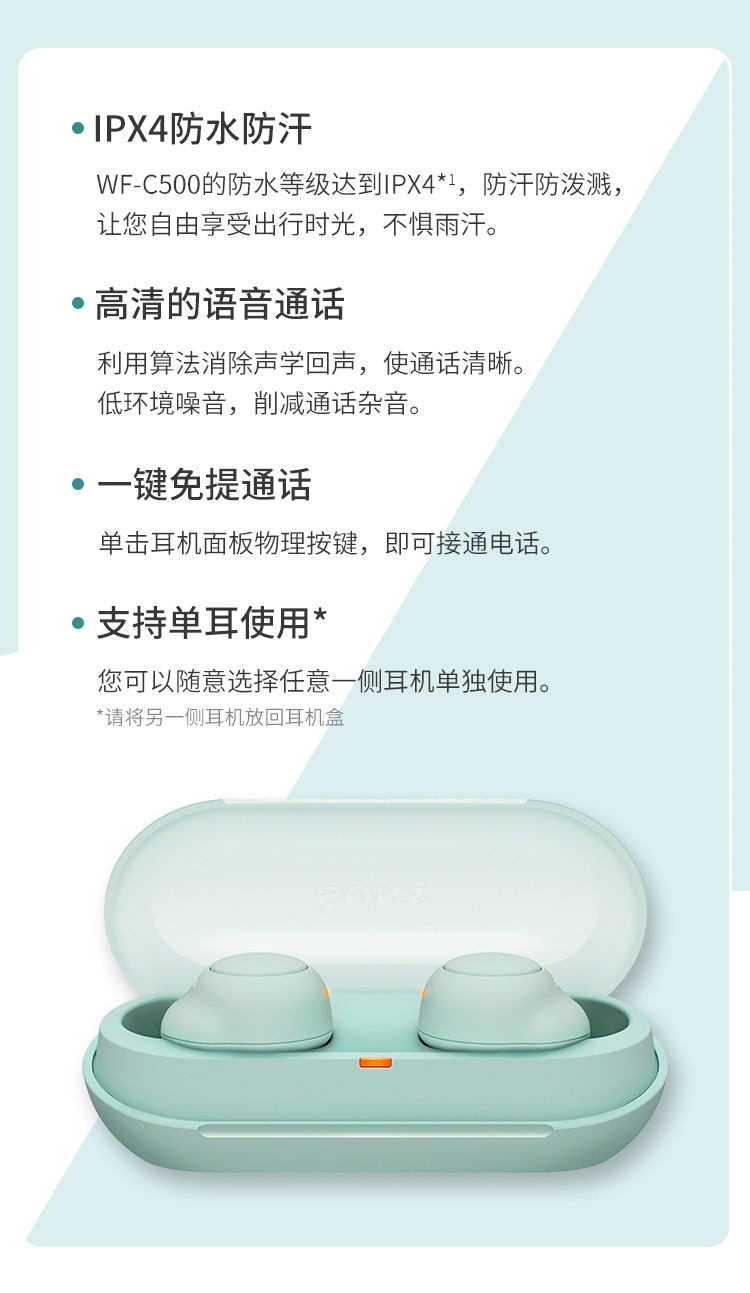 索尼(SONY)WF-C500 真无线蓝牙耳机 IPX4 防水防汗 白色