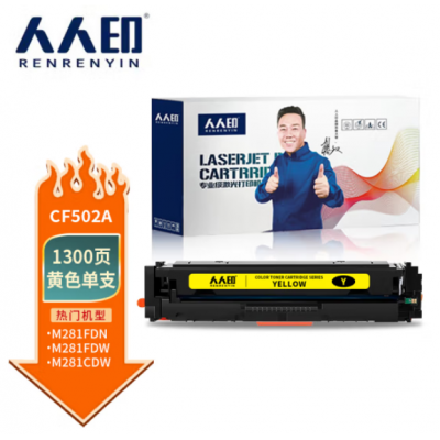 人人印CF502A 202A黄色硒鼓带芯片 适用惠普HP设备 M254dw M254nw M280nw M281fdw M281fdn 281fdw墨盒
