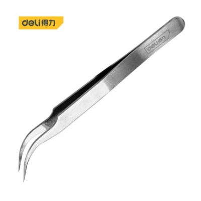 得力(deli) 不锈钢镊子 弯头镊子 便携镊子 DL396203