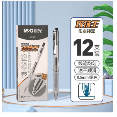 首页 > 办公用品 > > 晨光双珠王按动中性笔0.5mm黑色子弹头学生用速干顺滑刷题笔 简约大容量软胶护套 【 AGPK2301 黑色 单支】