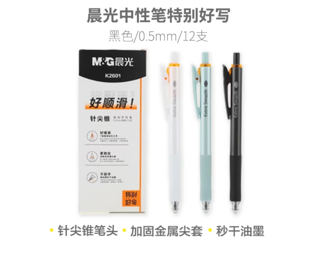晨光中性笔Exter特别好写 水笔AGPK2601 黑 0.5单支装