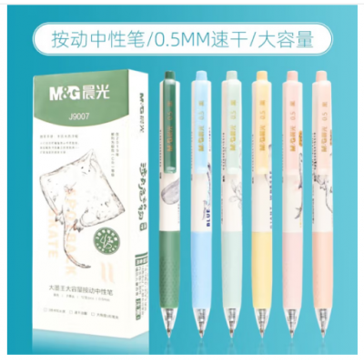 晨光(M&G)文具博物-濒危动物系列速干按动中性笔0.5mm黑色子弹头大容量学生用 AGPJ9007 单支装 颜色随机