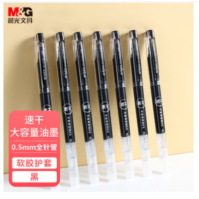 晨光(M&G)文具黑色0.5mm学生速干中性笔 大容量全针管签字笔 软握办公水笔 1支装AGPC2101