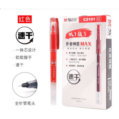 首页 > 办公用品 > > 晨光(M&G)文具红色0.5mm学生速干中性笔 大容量全针管签字笔 软握办公水笔 1支装AGPC2101