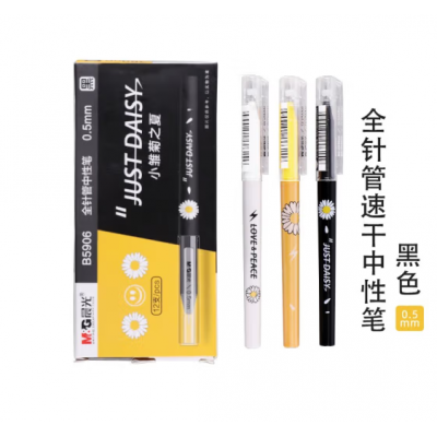 晨光(M&G)小雏菊之夏系列中性笔学生用限定碳素黑水笔签字笔可爱创意萌笔ins拔盖笔 笔杆随机 拔盖款-0.5mm【AGPB5906】 单支